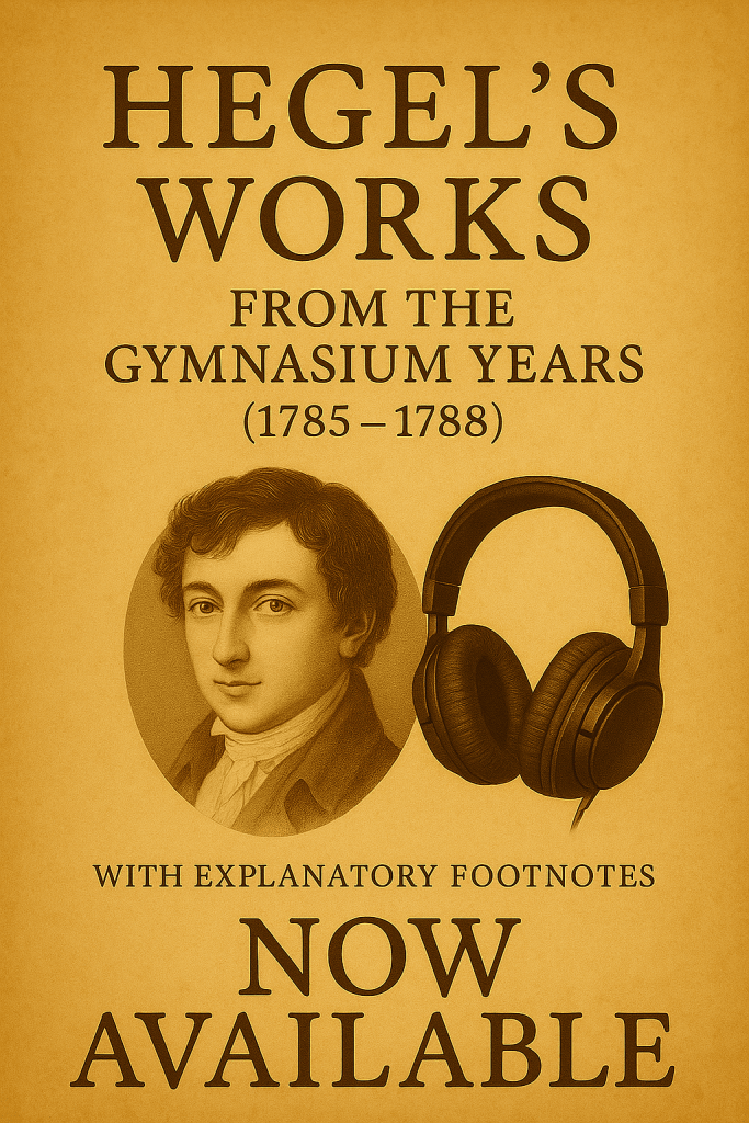 Hegel’s Works from the Gymnasium Years (1785–1788), translated by Simon Gros and narrated by Leda Eliza, continues the presentation of Georg Wilhelm Friedrich Hegel’s earliest surviving writings, following directly after Hegel’s Diary (1785–1787). Written during his final years at the Stuttgart Gymnasium and early days at the Tübingen Seminary, these texts offer a rare view into the intellectual development of a thinker who would later reshape modern philosophy.
