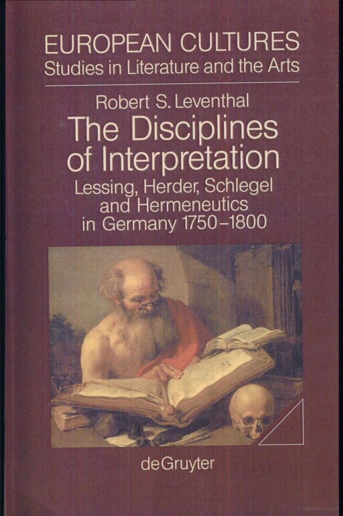 Robert S. Leventhal’s The Disciplines of Interpretation: Lessing, Herder, Schlegel and Hermeneutics in Germany, 1750–1800 is a genealogy of interpretive reason at the precise historical moment when “reading” ceases to be a private virtuosity and becomes a structured practice, an institutional technology, and a self-questioning mode of historical knowledge. Published by Walter de Gruyter in 1994 as part of the European Cultures series, the volume situates eighteenth-century German hermeneutics at the crossing of philology, criticism, theology, and philosophy, turning a scattered repertoire of methods into disciplines with rules, sites, and pedagogies. Its wager is that hermeneutics emerges not as a timeless philosophical universal, but as a historically determined configuration that displaces the sovereign subject with a field, a code, and a system of texts to be governed by learned practices.